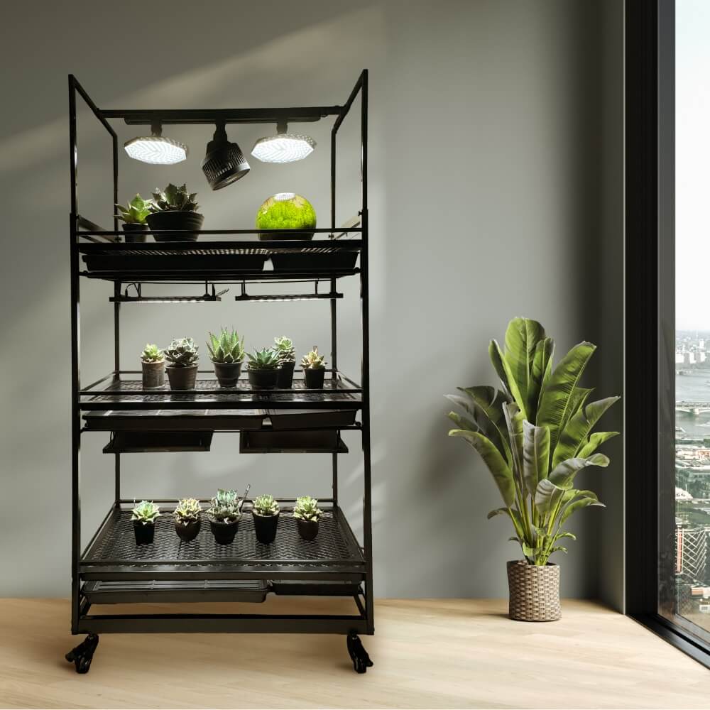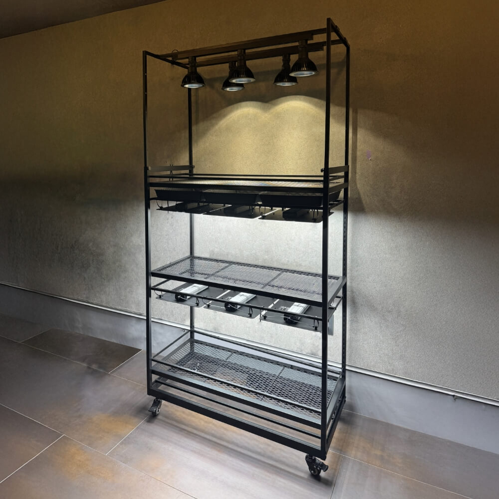 Linea Flora ボタニカルラックは、植物を育てながら魅せるために設計されたラックです。洗練された直線的なデザインに、植物育成に特化した機能を搭載し、空間に新たな価値を生み出します。